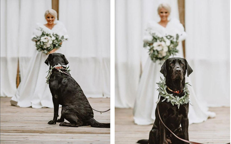 رد فعل كلب شاهد صاحبته لأول مرة في فستان الزفاف... صور