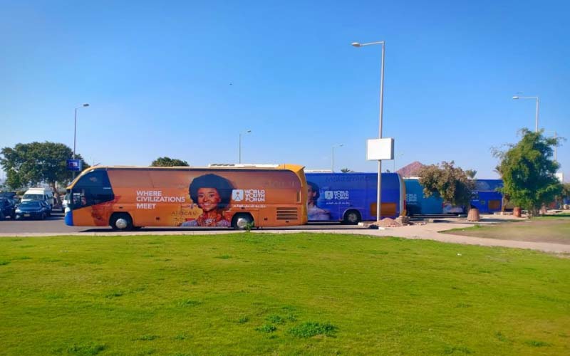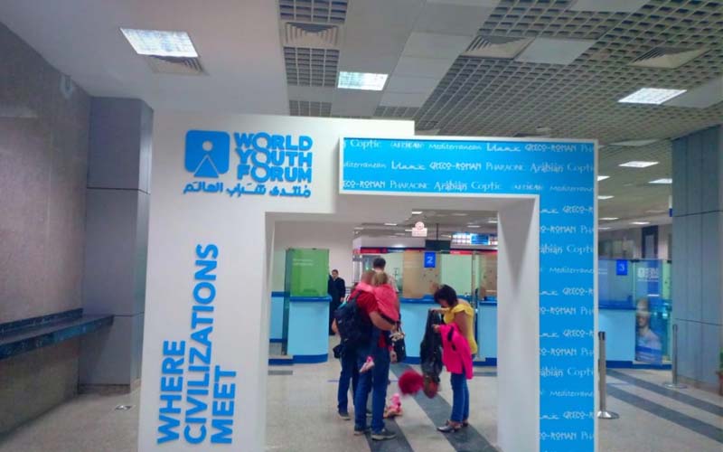 والمحطة وخدمات الركاب لاستقبال المشاركين لإرشاد الوفود وإمدادهم بكافة المعلومات حول المشاركة فى أنشطة المنتدى كما تم تزيين المطارات المستضيفة لوفود المؤتمر والأتوبيسات الناقلة لهم بشعار ولافتات المنتدى، وتخصيص ساحات إنتظار للسيارات الخاصة بالمؤتمر وتم رفع كفاءة حدائق فناء المطار الداخلى والخارجى بما يتناسب مع الوجهة الحضارية لمطار شرم الشيخ الدولى ومن الجدير بالذكر أنه قد تم تجهيز وتخصيص مبنى الركاب رقم (2) الذى تم افتتاحه مؤخرًا لسفر الوفود وتوديعهم عقب انتهاء فعاليات المنتدى.