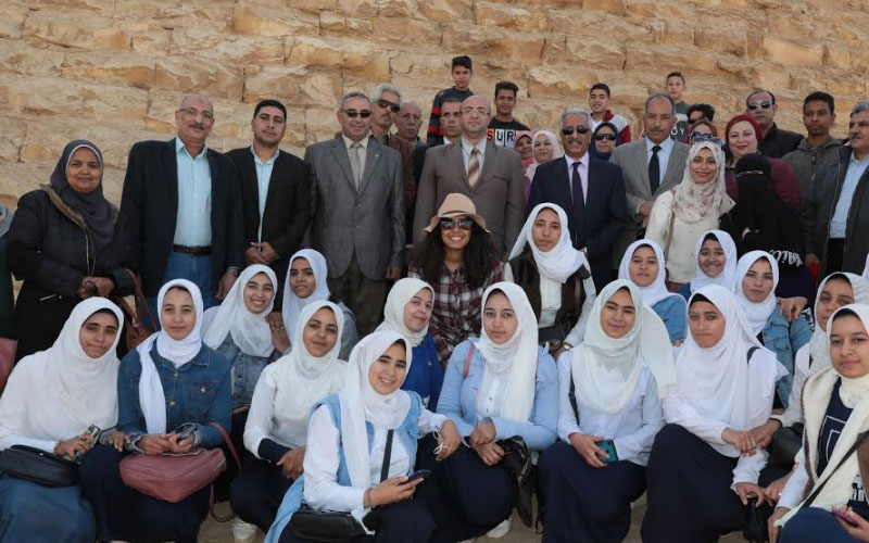 كما التقى المحافظ بعدد من الزائرين للمنطقة، أثناء تواجدهم في رحلة سياحية وتعليمية للمنطقة الأثرية ،حيث تصادف وجود عدد من السياح الفرنسيين وبعض طلاب قسم الآثار بكلية الآداب وطالبات مدرسة الزخرفية بالواسطى ،والذين حرصوا على التقاط صور تذكارية مع المحافظ،وأجرى معهم حواراً حول الأهمية التاريخية والأثرية لهرم ميدوم،وتجول بالمنطقة والتي تضم مجموعة من المصاطب الخاصة بالأمراء والمصطبة الملكية والمعابد الجنائزية والمقابر الخاصة بأمراء الدولة في ذلك الوقت