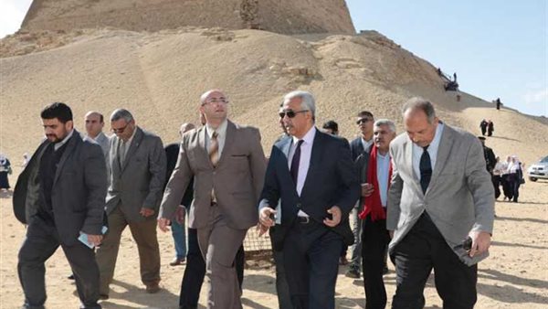 حيث تفقد المحافظ المنطقة الأثرية،واستمع من مسؤولى السياحة والآثار لعرض موجز عن المكانة التاريخية والقيمة الأثرية لهرم ميدوم الذي بناه الأمير"حوني"واستكمله "سنفرو"ويرجع للأسرة الرابعة ،وكان مكوناً من 7 درجات لم يتبق منها سوى 4 درجات.