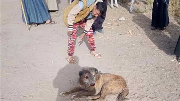 أهالي المعابدة بأسيوط يقتلون "كلبا" شبيها بالأسد.. (صور)