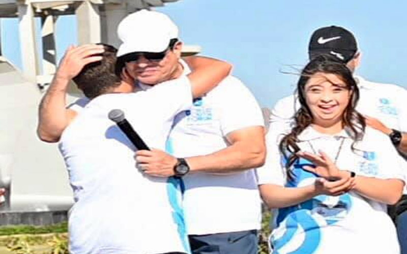 كما التقى الرئيس يلتقي بالشباب المشاركين في ماراثون السلام بعد انتهائه امام ايقًونة السلام بشرم الشيخ
