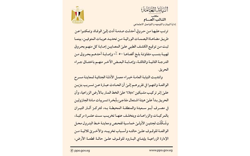عاجل.. النائب العام يحيل 10 متهمين بحريق خطوط بترول البحيرة للجنايات