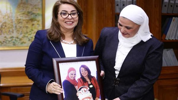 غادة والي تستقبل الوزيرة الجديدة بالورود وصورة تذكارية