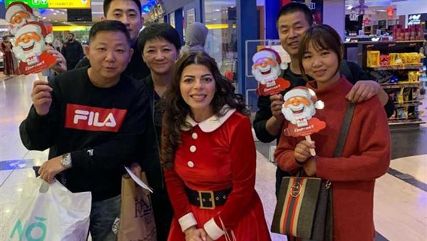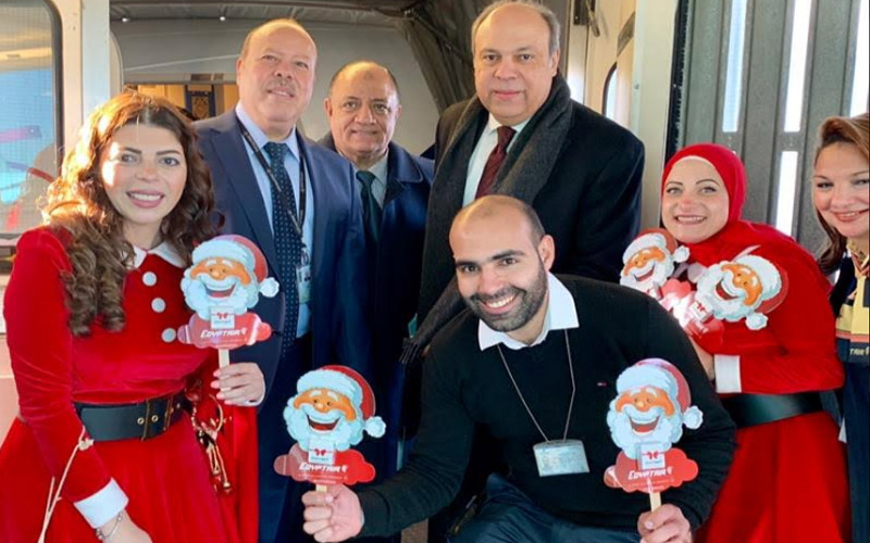 ارتدت مضيفات من مصر للطيران زي بابا نويل والرداء الأحمر ووزعن الهدايا على الأطفال وعائلاتهم، كما تزينت الكراسي بالأشكال الورقية التذكارية لبابا نويل.