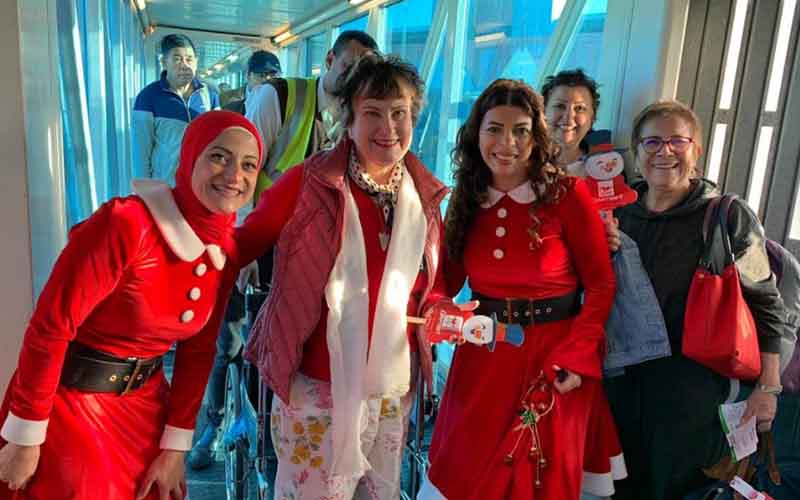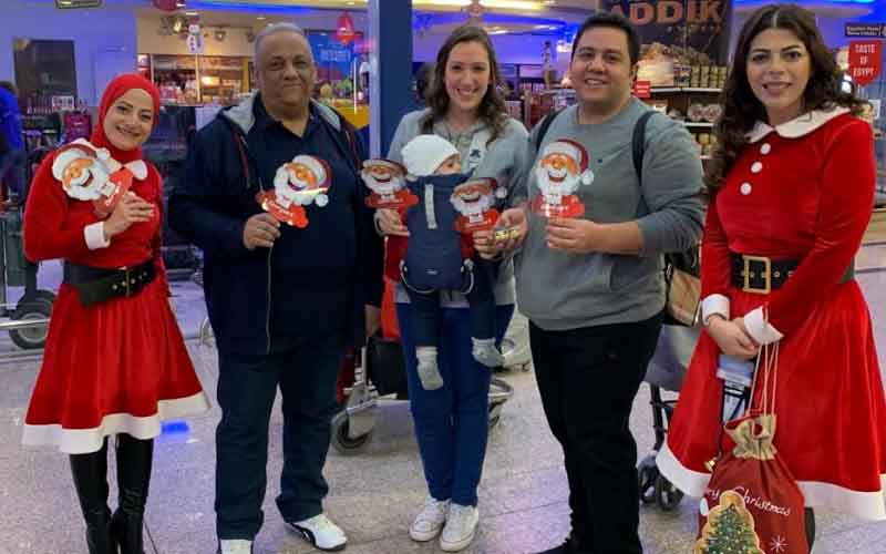 مصر للطيران توزع هدايا عيد الميلاد على المسافرين بالمطارات "صور"