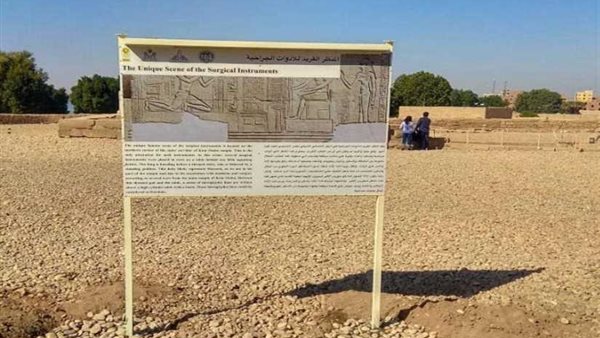وتتضمن اللوحة الإرشادية الجديدة صورا لأدوات الجراحة الطبية الموجودة بالنقش الأصلي وشرح مختصر لها.