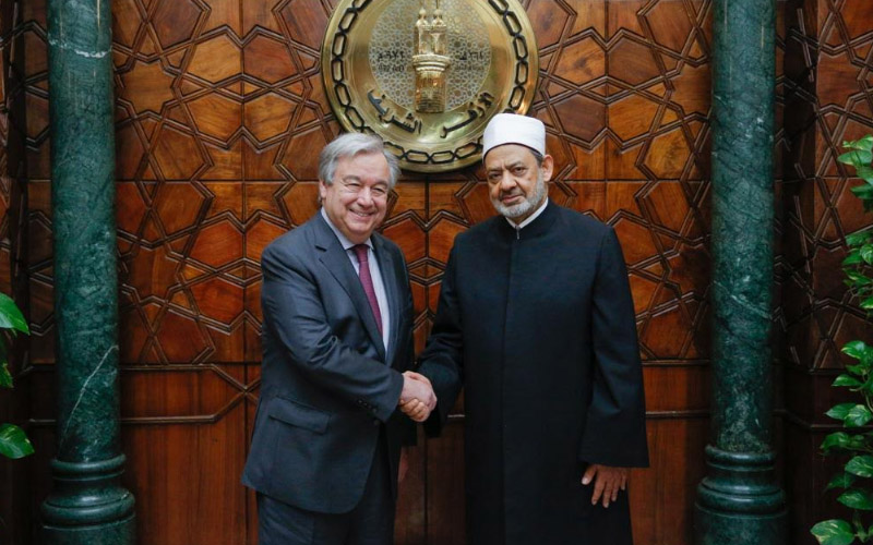 حرص الامام الأكبر خلال جولاته الداخلية والخارجية على نشر مفهوم التسامح والتعايش السلمي ودعم قيم الأخوة الإنسانية بين جميع البشر، وشهد عام 2019م نقلة نوعية على مستوى العلاقات ما بين الأزهر والفاتيكان، تجسدت في لقاءات فضيلة الإمام الأكبر بالبابا فرانسيس بابا الفاتيكان، والتي كان أبرزها عقد لقاء الأخوة الإنسانية في دولة الإمارات العربية المتحدة، برعاية من الشيخ محمد بن زايد ولي عهد الإمارات، والتي أثمرت عن التوقيع على وثيقة "الأخوة الإنسانية" التاريخية، واستمرارًا لدعم التعاون المشترك بين الأزهر والفاتيكان لتحقيق الإخاء الإنساني، شارك فضيلته في أعمال مؤتمر قمة قادة الأديان تحت عنوان "تعزيز كرامة الطفل في العالم الرقمي"، بالمقر الرئيسي للأكاديمية البابوية للعلوم بالفاتيكان.