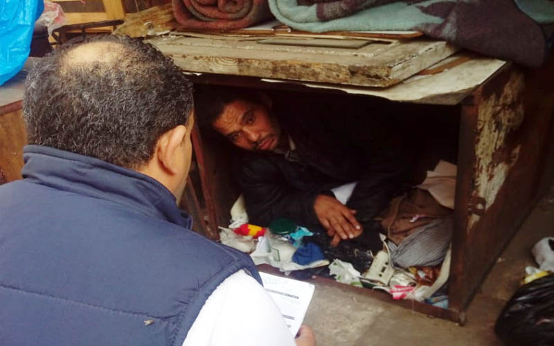 في استجابة فورية لبلاغ ورد لفريق التدخل السريع بالتضامن عن وجود شاب أربعيني يتخذ من صندوق حديدي مأوى له بأحد الشوارع المؤدية لميدان التحرير بالقاهرة.