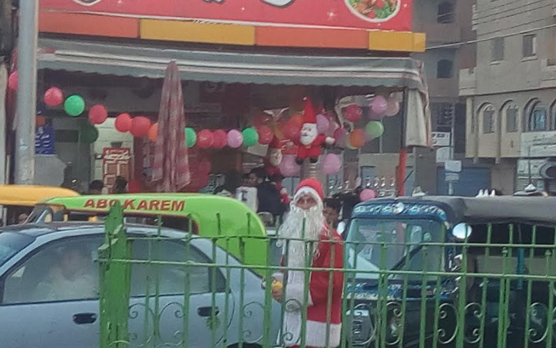 ارتدي "أحمد. م.ح."، أحد شباب مركز قويسنا بمحافظة المنوفية، زي بابا نويل رمز الاحتفال بأعياد الكريسماس، وتجول بشوارع مدينة قويسنا وميدان الشهداء، وقام بتوزيع الهدايا التذكارية علي الأهالي، وذلك قبل ساعات من بدء الاحتفالات بشوارع المنوفية والتي مقرر لها مساء اليوم.