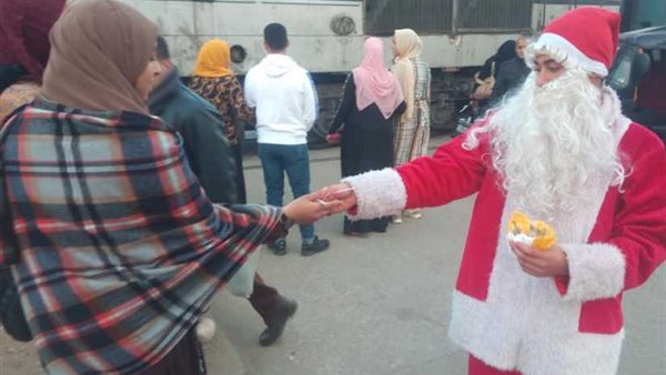 قبل بدء الاحتفالات ليلًا..بابا نويل يوزع الهدايا علي أهالي المنوفية (صور)