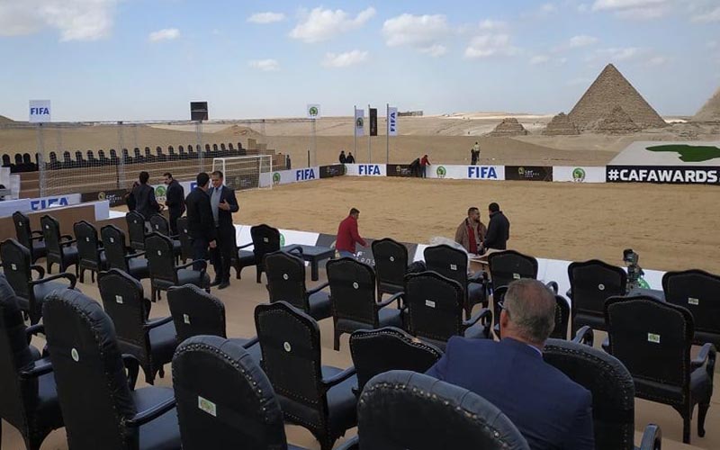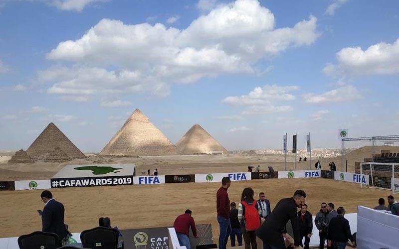 بالصور.. ملعب مباراة أساطير إفريقيا على سفح الأهرامات