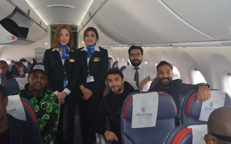 انطلقت اليوم رحلة مصر للطيران الخاصة من مطار القاهرة الدولي لمطار الغردقة وهي تقل عددا من نجوم القارة السمراء في كرة القدم نجوم القارة السمراء للمشاركة في حفل "كاف" لاختيار الأفضل في قارة إفريقيا.