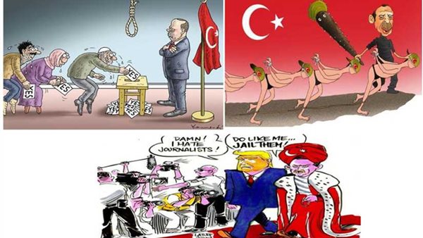 بات رجب طيب أردوغان، مادة ثرية للسخرية، تفتح شهية رسامي الكاريكاتير في العالم، من فرط قمعه وديكتاتوريته، والتناقض الصارخ بين شعاراته الجوفاء وممارساته الفعلية، المستنسخة من أفكار تنظيم الإخوان الإرهابي.