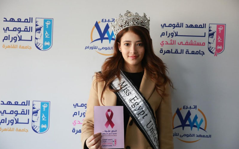 في إطار الدعم وتقديم المساندة لمريضات سرطان الثدي، زارت ملكة جمال مصر للكون ٢٠١٩ ديانا حامد والوصيفة الأولى آية عبد الرزاق والوصيفة الثانية ميرنا مكاوي مستشفى الثدي التابع للمعهد القومي للأورام ٧٧٧، وحرصن على تبادل الحديث مع المريضات والاطمئنان عليهن والتقاط الصور التذكارية معهن، وتشدن بمستوى الخدمات الطبية المقدمة داخل المستشفى والتعامل الراقي والإنساني من قبل الأطباء وفريق التمريض.