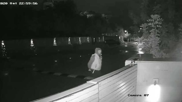 وظهر من خلال الفيديو أن القتيل الذي دخل فيلا عجرم قبل أن يضع القناع على وجهه، وهو يستكشف المنزل، والسلاح يبدو واضحا على خصره الأيمن.