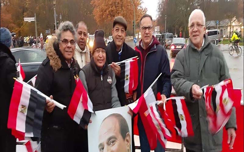 اصطفت أعداد غفيرة من أفراد الجالية المصرية في ألمانيا، للترحيب بالرئيس عبد الفتاح السيسي- الذي يشارك في أعمال "مؤتمر برلين" حول ليبيا- أمام مقر إقامة الرئيس بالعاصمة الألمانية (برلين).