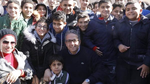 سيلفي وزير السياحة والآثار مع الأطفال زوار دير جبل الطير
