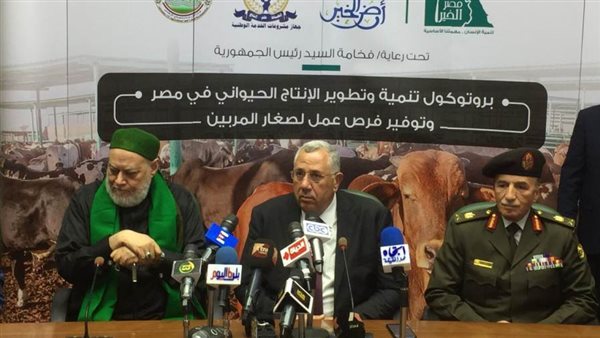 وأوضح وزير الزراعة أن البرتوكول يقدم نموذجا مشرفل في آليات التعاون، من أجل تطوير وتنمية الثروة الحيوانية، وتشغيل الشباب، واستقدم سلالات محسنة، مشيراً إلي أن العمل سيبدأ من الغد، وخاصة أن الأدوار ووجبات كل طرف محددة، فوزارةالزراعة تقدم المزارع، ومؤسسة مصر الخير تتولي تشغيلها، وجهاز الخدمة الوطنية يوفر السلالات، موضحا أن الوزارة سوف تقوم أيضا بتوفير الرعاية البيطرية.