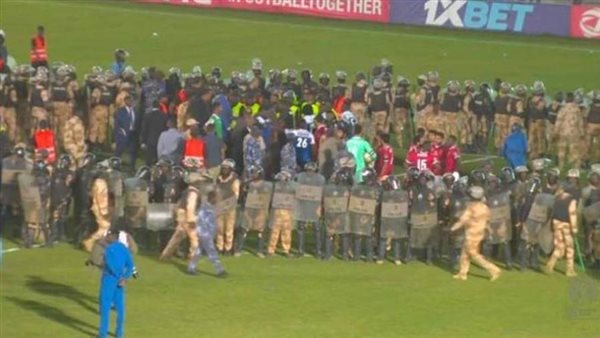 وقام رجال الأمن السودانيون، بإخراج المشجع من أرض الملعب ولكن تلاه نزول مشجع آخر، وحدث احتكاك من اللاعبين السودانيين مع حكم المباراة. وتطورت الأحداث بنزول قوات الأمن والجيش السودانى إلى أرض الملعب، واستمرت الاحداث لأكثر من 6 دقائق، ثم استأنفت المباراة.