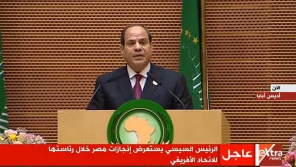 وأشار السيسي، إلى تلك الإجراءات التي اتخذتها مصر من أجل النهوض بالاتحاد الإفريقية، قائلاً: "ولقد اتخذ اتحادنا خلال العام الماضي خطوات مهمة على صعيد تفعيل مسار الاصلاح وترجمة مقرراته بنتائج ملموسة، شملت اجراءات اصلاح منظومة التوظيف لمفوضية الاتحاد الافريقي، وإحكام الرقابة الادارية والمالية، فضلا عن تفعيل صندوق السلام، باعتباره آلية افريقية تعزز من استقلالية القرار الافريقي في مجال السلم والأمن، وستستمر جهودنا في هذا الملف الحيوي".