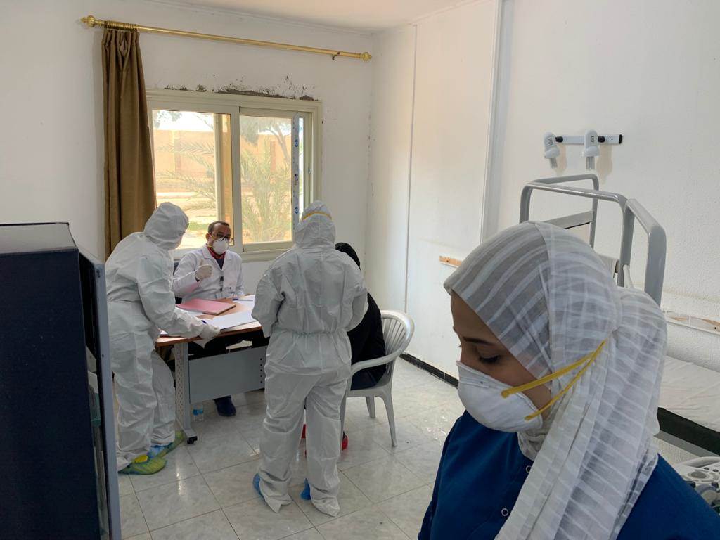 وتم تدريب القوى البشرية على إجراءات مكافحة العدوى في حالة نقل أى حالات قد يشتبه بها إلى مستشفي الإخلاء، وتشمل التزام الحالة المشتبه بها بارتداء الواقيات وتنظيف الأيدي بالكحول، بالإضافة إلى التأكيد على التزام المسعفين بارتداء الواقيات الطبية أثناء نقل الحالة، وخلعها بطريقة آمنة بعد الانتهاء من مهامهم، وتشغيل التطهير الذاتي لعربة الإسعاف بعد نزول المريض للمستشفى، وتم التأكيد على أفراد الفريق الصحي الخاص باستقبال الحالات بالمستشفى باتباع إجراءات مكافحة العدوى تحت إشراف فريق مكافحة العدوى، وتنظيف وتطهير الغرفة بعد خروج المريض منها، كما تم عقد ١٢ ندوة توعوية لجميع النزلاء و٣٠ ندوة لمقدمي الخدمة الطبية.