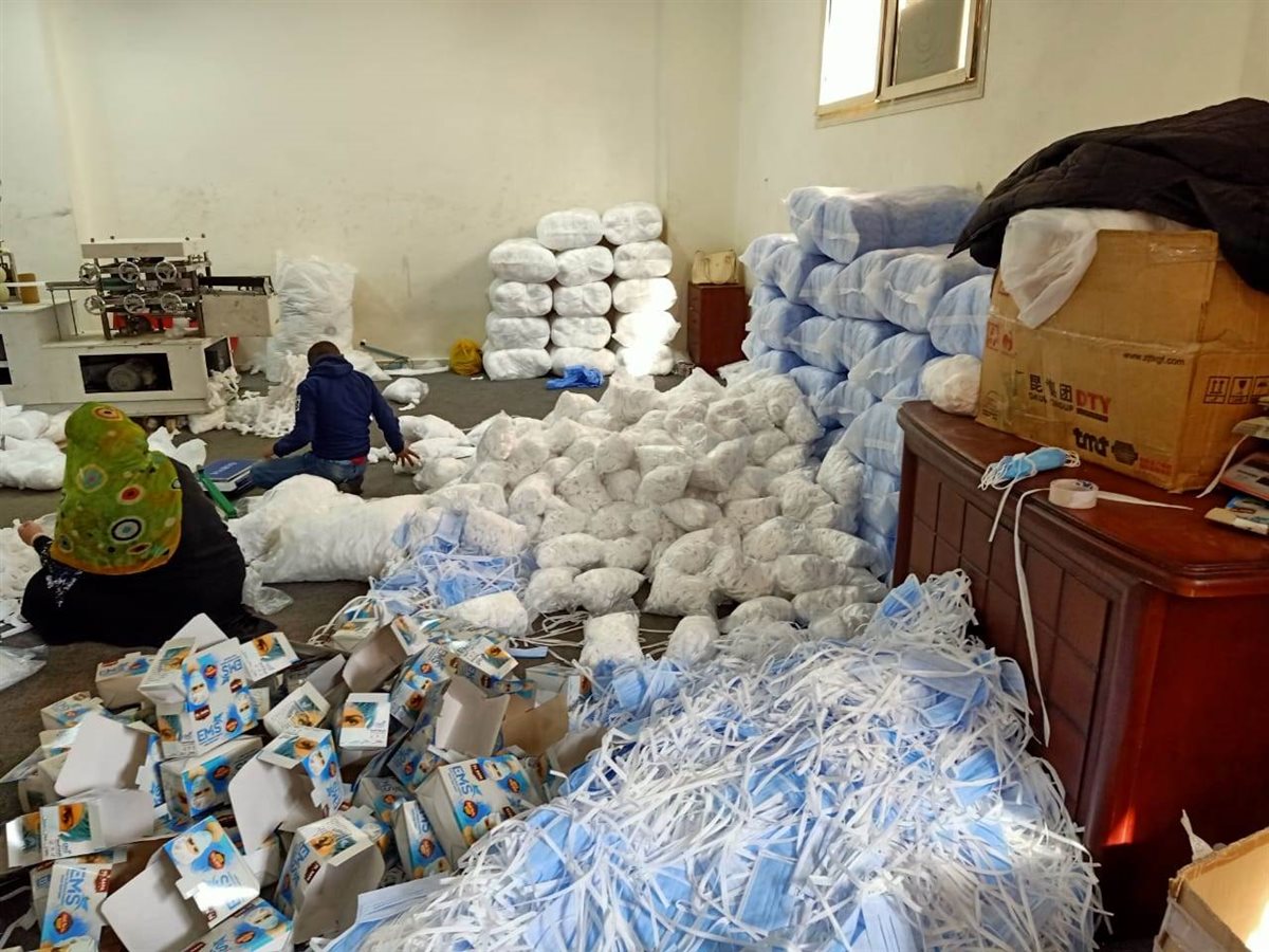 تم مداهمة عدة مصانع تعمل بدون ترخيص لتصنيع المستلزمات الطبية ، في بيئة غير مكتملة الاشتراطات الصحية ، ولا يتوافر بها وسائل السلامة والصحة المهنية ، وتم غلق وتشميع ٢ مصنع لتصنيع الماسكات ، والقفازات غير المعقمة ، والتحفظ علي مدخلات الإنتاج ، والمنتج النهائي ، واتخاذ كافة الإجراءات القانونية اللازمة حيال المصنعين .