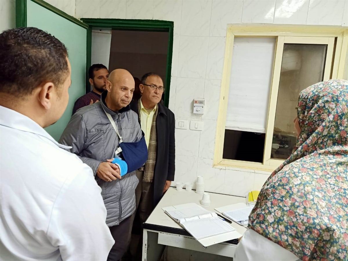 كما تفقد وكيل الوزارة سير العمل بالقافلة العلاجية، بحضور مدير الإدارة الصحية، ومنسقة القوافل الطبية بالمديرية، حيث تتوافر بالقافلة الطبية تخصصات "الجراحة العامة، والقلب، والباطنة، والصدر، والأسنان، والنساء والتوليد، والأطفال، والأنف والأذن والحنجرة، وتنظيم الأسرة، والجلدية"، بجانب إجراء الفحوصات المعملية، والأشعات اللازمة لهم، وتابع توقيع الكشف الطبي على المرضى، وبلغ إجمالي ما تم الكشف عليه ١٧٠٠ مريض حتى وقت الزيارة، وتأكد من صرف العلاج اللازم لهم مجانا.