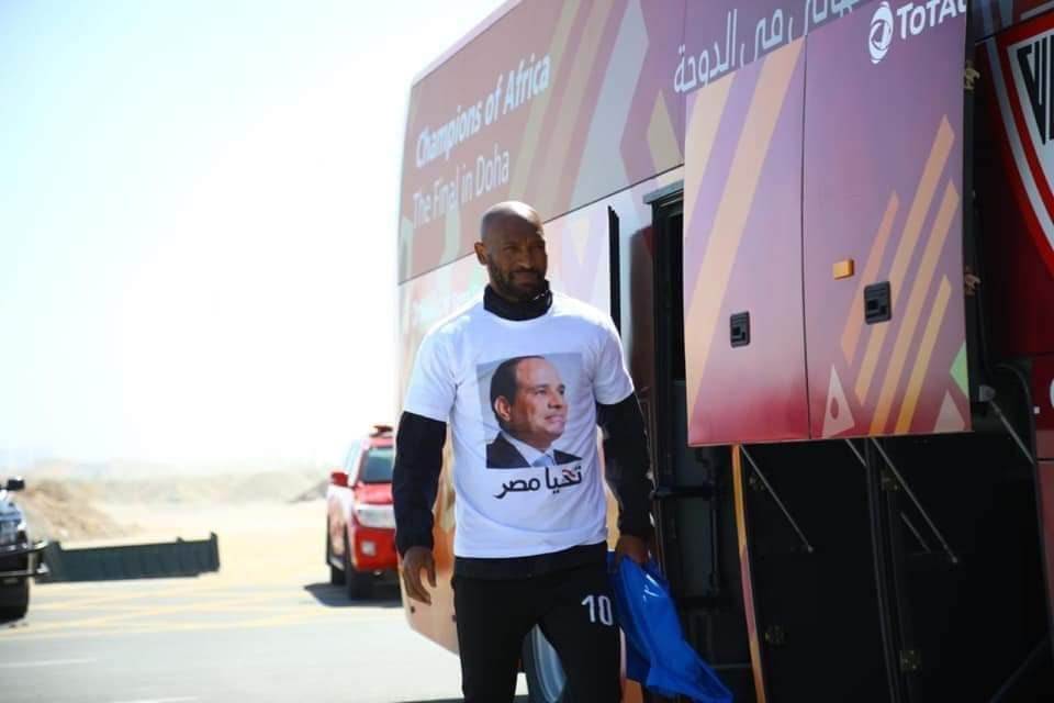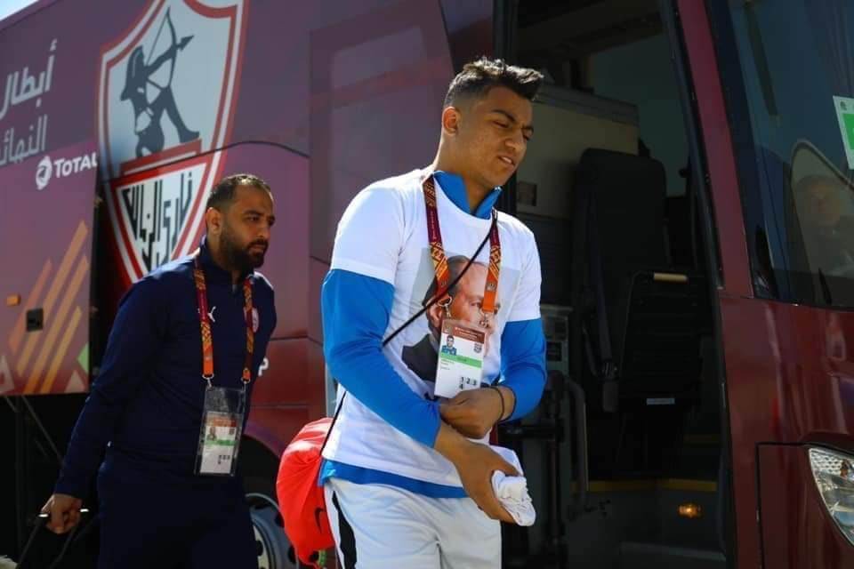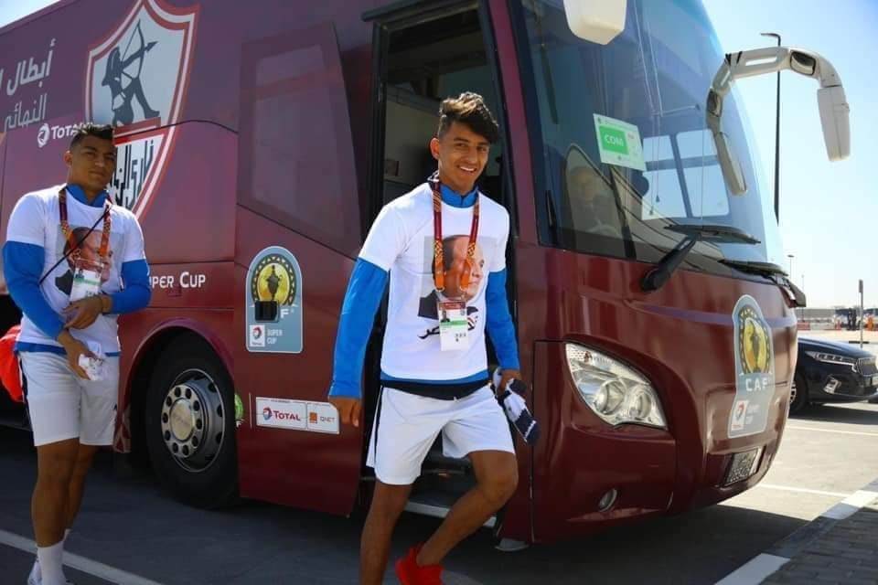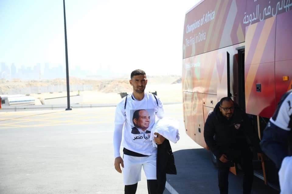 وارتدى لاعبو الزمالك، قميصًا مطبوعًا عليه صورة الرئيس عبدالفتاح السيسي، وجملة "تحيا مصر"، وذلك أثناء التوجه إلى ستاد "الغرافة"، لخوض المباراة.