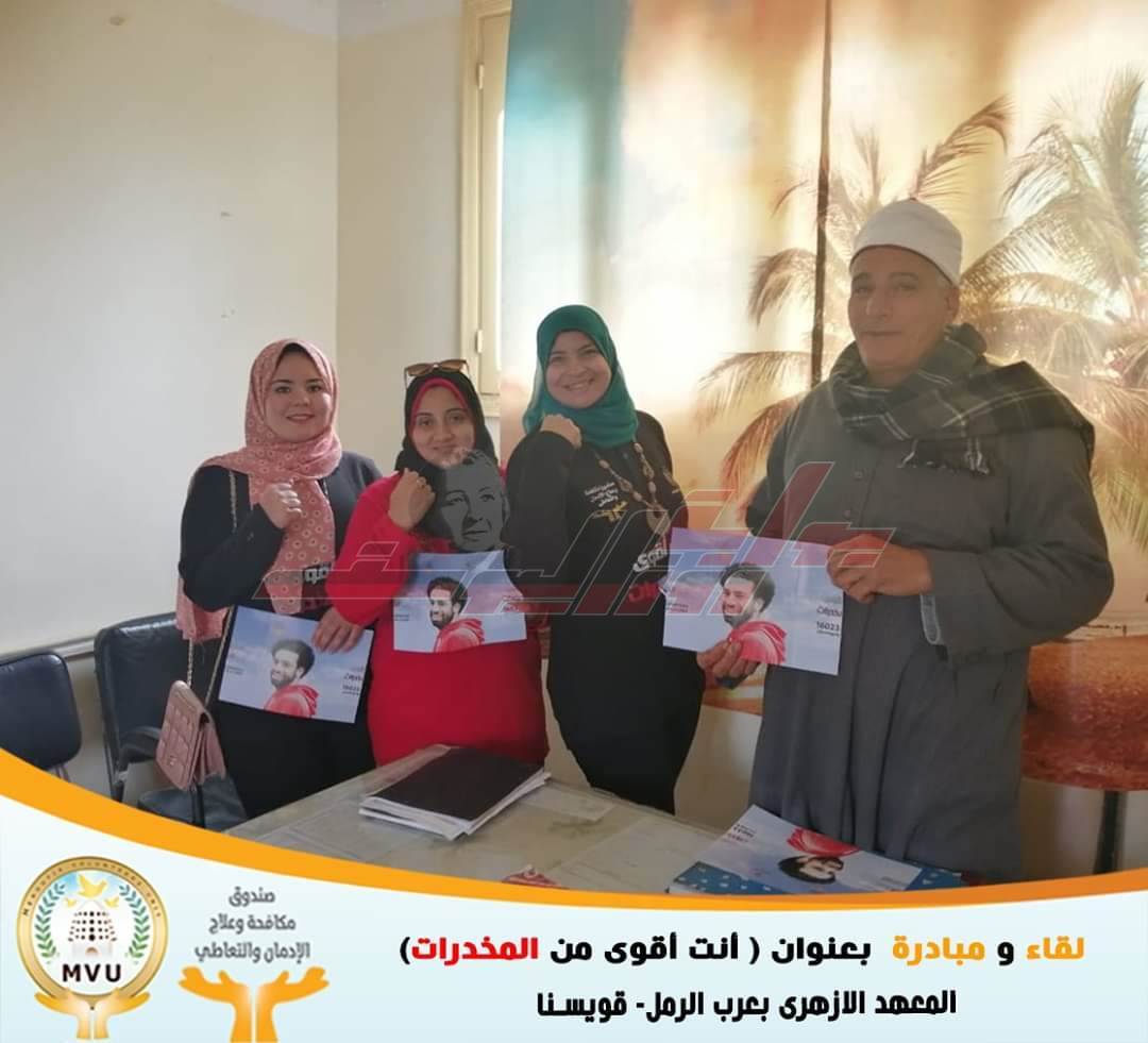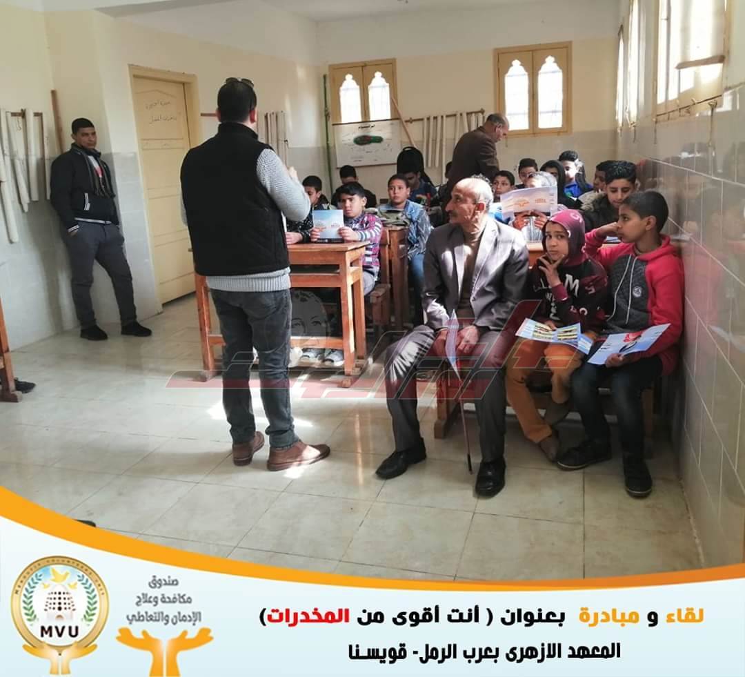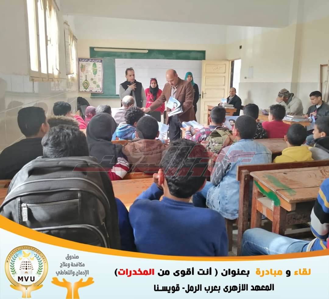 نظم وحدة صندوق مكافحة وعلاج الإدمان بمحافظة المنوفية، برئاسة الدكتور مصطفى حسين، مشرف عام البرامج الوقائية بصندوق مكافحه وعلاج الإدمان والتعاطى بالمنوفية، وأعضاء الوحدة، حملة توعوية داخل المعهد الأزهري بقرية عرب الرمل التابعة لمركز قويسنا، للتوعية ضد مخاطر الإدمان والتعاطي.