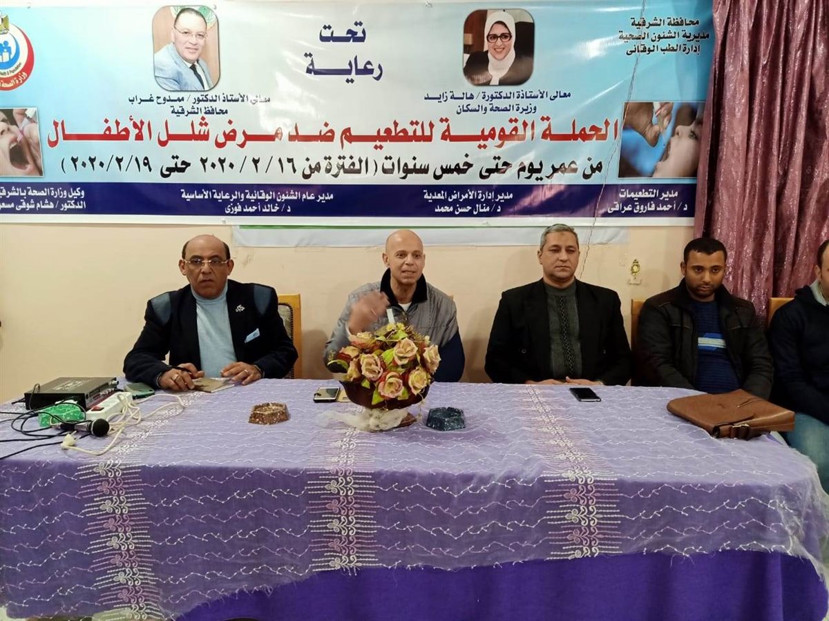 يذكر أن الحملة القومية للتطعيم ضد مرض شلل الأطفال انطلقت بالمحافظة الاحد ، وتستمر حتي الأربعاء القادم ، وتستهدف مليون ، ١٦٠ ألف ، ٢١٩ طفل من عمر يوم وحتي ٥ سنوات علي مستوي المحافظة ، ويتم التطعيم لجميع الأطفال المصريين والمقيمين بالمحافظة ، من خلال الفرق الطبية والتي تعمل وفق خطة عمل محددة ، تم التدريب عليها ، ويتم التطعيم من منزل لمنزل ، والتطعيم عبارة عن نقطتين توضع بفم الطفل بزاوية ٤٥ درجة ، وتم عقد الدورات التدريبية لجميع الفرق الطبية المشاركة بالحملة ، وعقد الإجتماعات المكثفة لفريق الإشراف عليها ، لضمان وصول الخدمة بشكل جيد لجميع الأطفال المستهدفين بالحملة داخل محافظة الشرقية.