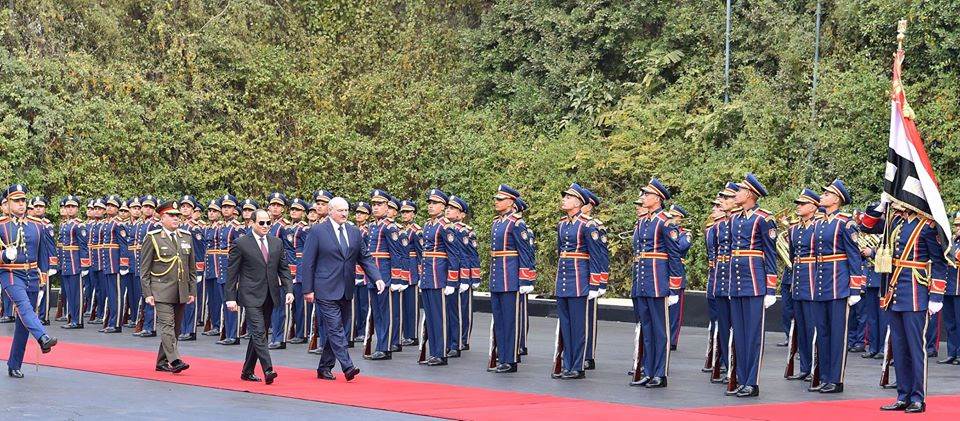 استقبل الرئيس عبد الفتاح السيسي اليوم بقصر الاتحادية الرئيس ألكسندر لوكاشينكو، رئيس جمهورية بيلاروس، حيث أجريت مراسم الاستقبال الرسمي وتم عزف السلامين الوطنيين واستعراض حرس الشرف، وعقب ذلك أجرى الرئيسان جلسة مباحثات ثنائية تلتها جلسة موسعة ضمت وفدي البلدين.