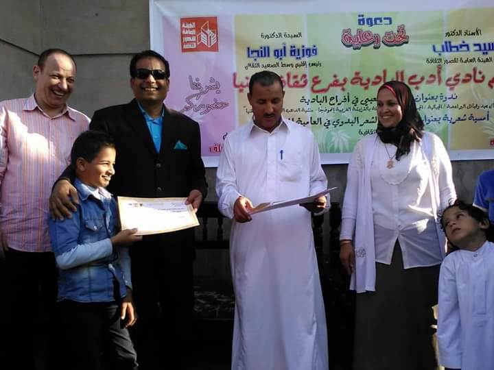يقام تحت رعاية الدكتور احمد عواض رئيس الهيئة العامة لقصور الثقافة ودعم العميد محمد نبيل رئيس اقليم وسط الصعيد الثقافى ومتابعة خالد اسماعيل مدير عام فرع ثقافة المنيا يقيم نادي ادب وشعراء البادية بالمنيا وصعيد مصر ندوة وامسية شعرية تحت عنوان "ادب البادية و التنمية السياحية بالمنيا" وذلك فى منطقة اثار تونا الجبل واجواء قبيلتى الجهمه والفواخر.