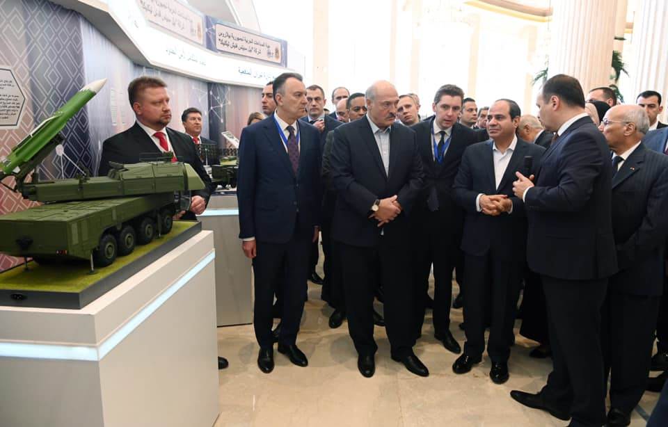 كما تفقد الرئيس وضيفه الكريم المعرض المقام بمناسبة انعقاد مجلس الأعمال المصري-البيلاروسي، بالعاصمة الإدارية بفندق الماسة كابيتاك، وذلك بمشاركة الشركات البيلاروسية والمصرية، حيث ضم المعرض بعض إنتاج بيلاروسيا في قطاعات مختلفة، وكذلك عدد من المعدات التي تم إنتاجها في مصر بشكل مشترك بين الجانبين خاصة في مجالات التكنولوجيا الفائقة والآلات كبيرة الحجم".