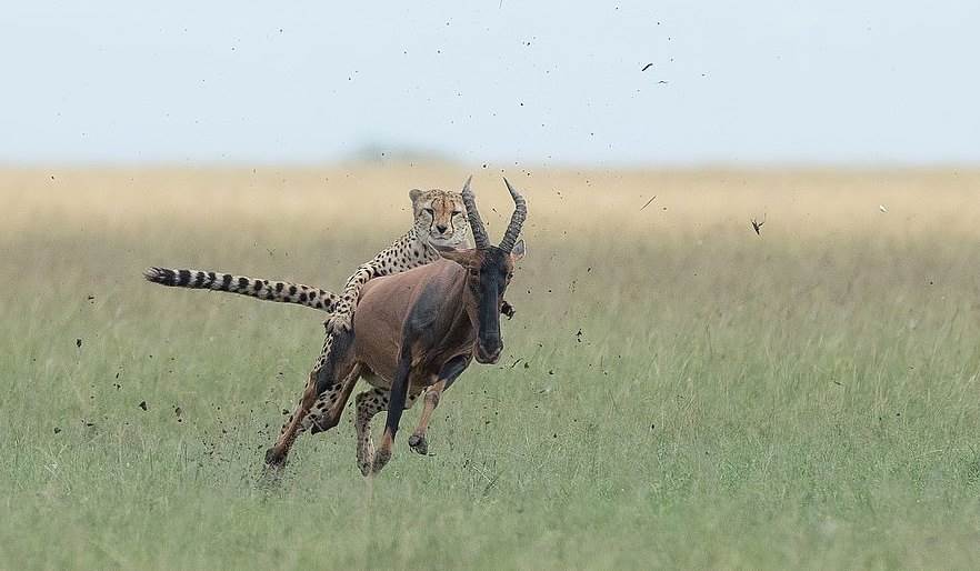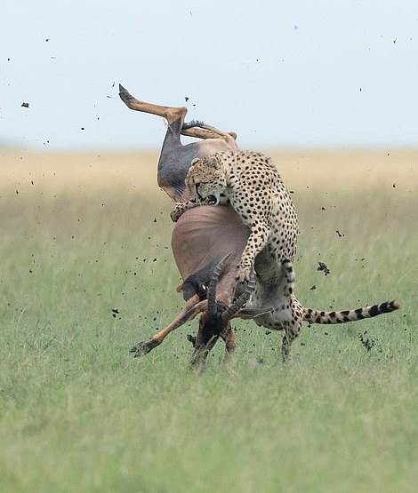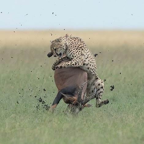 المصور الهولندي "ديك فان دويجن"، التقط مجموعة من الصور لصراع بين الفهد والظباء في محمية ماساي مارا الوطنية في كينيا، وتدخل أشقاء الفهد الأربعة للسيطرة على فريسته وتمزيقها كوجبة ثمينة للفهود الجائعة.