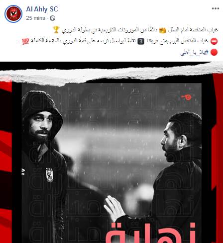 وكتبت صفحة الأهلي الرسمية على موقع التواصل الإجتماعي "فيس بوك":"غياب المنافس أمام البطل، دائمًا من الموروثات التاريخية في بطولة الدوري".