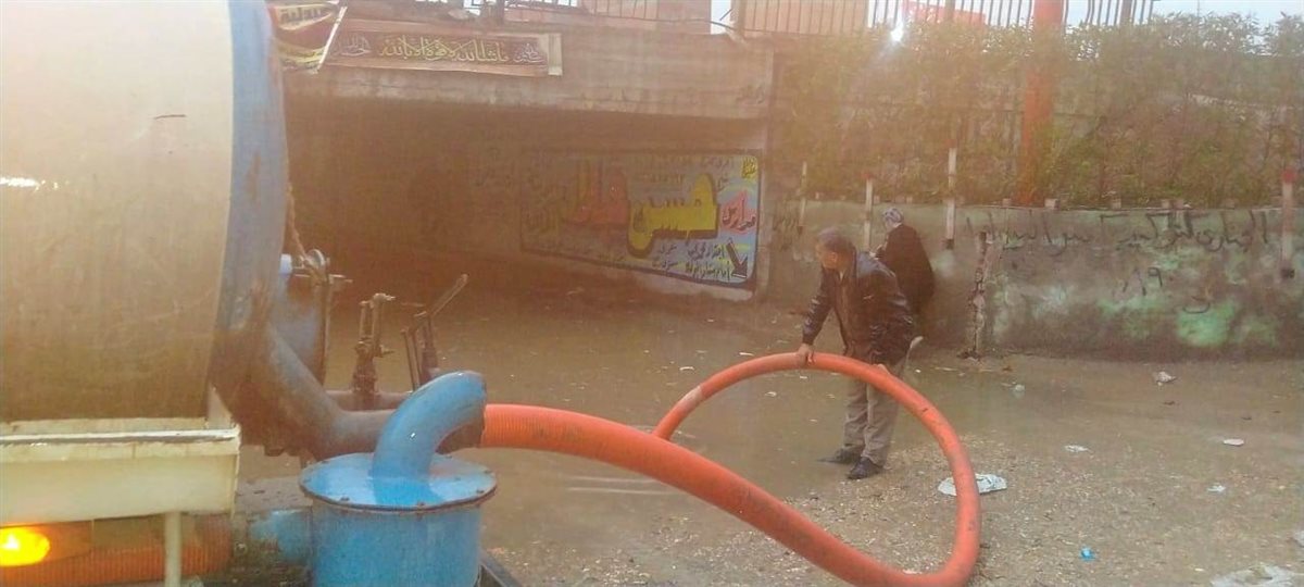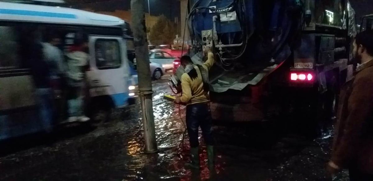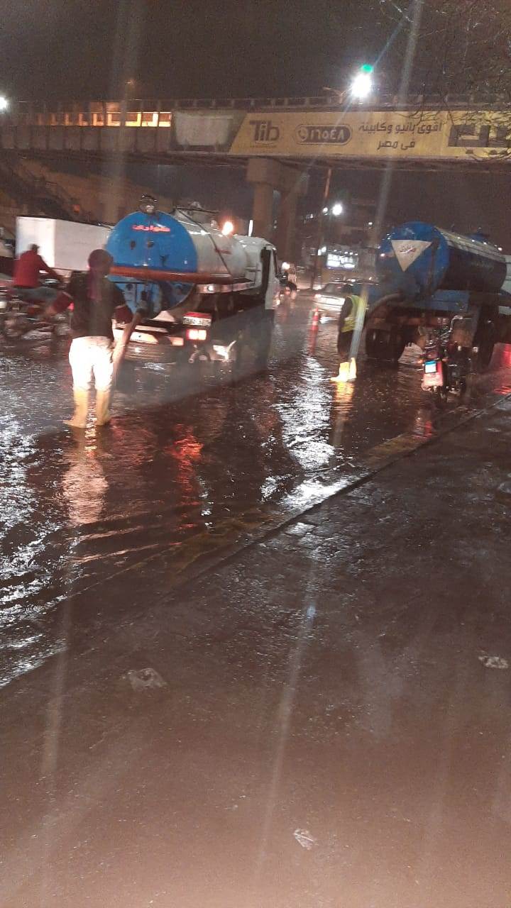 وانتشرت سيارات الشفط والكسح ومعدات الصرف لسحب المياه بالشوارع الرئيسية والفرعية والميادين المختلفة لمواجهة تراكم كميات مياه الناتجة عن الأمطار والتدخل الفوري لعودة الحركة المرورية بالطرق.