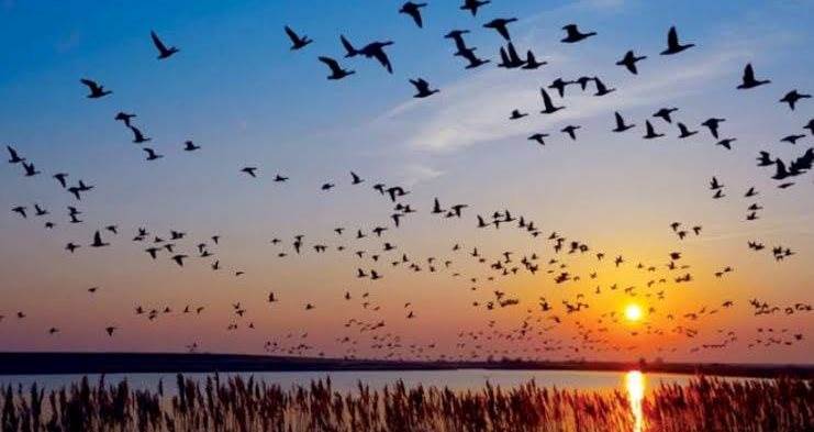 الطيور المهاجرة تشكل سيمفونية فوق بحيرة البردويل