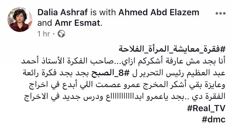ما بين الجدية والطرافة قدمت الإعلامية داليا أشرف مذيعة برنامج "8 الصبح" بقناة DMC فقرة عن معايشة عن الفلاحة المصرية وكيفية إدارتها شؤون حياتها اليومية لتقدم نموذجًا للمرأة المصرية وعظمتها.