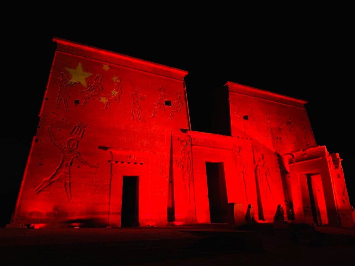وأكد مدير عام آثار أسوان والنوبة الدكتور عبد المنعم سعيد، في تصريحات صحفية اليوم، أنه بناء على توجيهات الدكتور خالد العناني وزير السياحة والآثار وتعليمات الدكتور مصطفى وزيري الأمين العام للمجلس الأعلى للآثار قامت شركة الصوت والضوء بأسوان، بإسقاط علم الصين بشكل ضوئي على جدران معبد فيلة؛ تضامناً مع دولة الصين في انتشار مرض (كورونا) الجديد، وبالتزامن مع وصول الدكتورة هالة زايد وزيرة الصحة والسكان لدولة الصين.