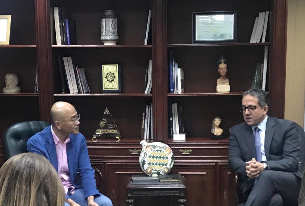 استقبل الدكتور خالد العناني، وزير السياحة والآثار، بمقر الوزارة بالزمالك، جوان لي، رئيس شركة سامسونج للإلكترونيات مصر، والوفد المرافق له، وذلك لمناقشة تعزيز سبل التعاون لاستخدام تقنيات التكنولوجيا الحديثة للارتقاء بالخدمات السياحية في المناطق الأثرية والمتاحف.
