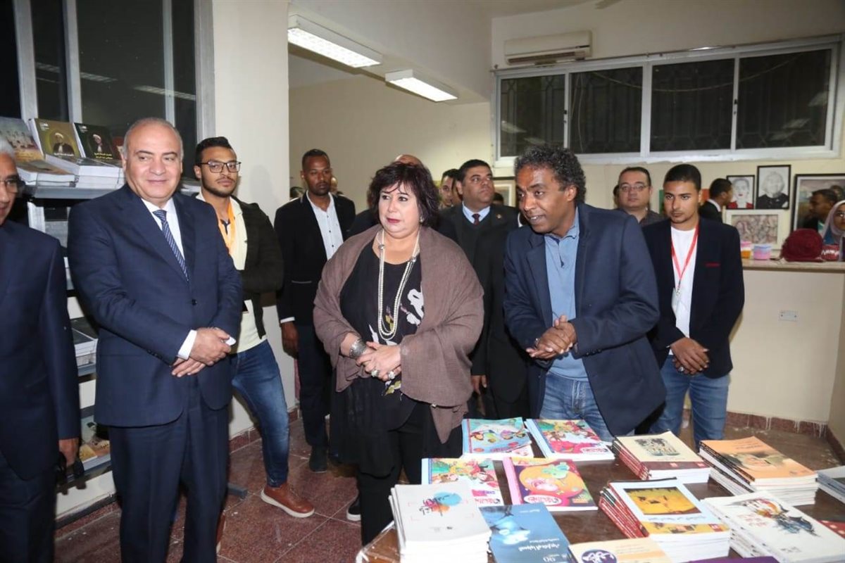 وكانت وزيرة الثقافة قد تفقدت معرضا للفنون التشكيلية، كما شهدت فقرة فنية لمجموعة من المواهب الواعدة بالجامعة. واقيم عقب ذلك حفل النجم هشام عباس مجموعة من اعماله الجماهيرية التى تجاوب معها الشباب وخلقت حالة من البهجة بينهم .