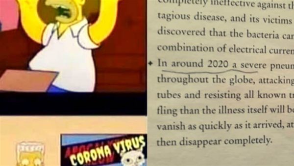 ليس هناك من ينكر أن سلسلة الكوميديا للرسوم المتحركة، هي الملك بلا منازع للتنبؤ بالأحداث العالمية الكبرى، فقبل 16 عامًا تقريبًا، ظهر في حلقة بعنوان "Bart to the Future" أن دونالد ترامب سيصبح رئيسًا للولايات المتحدة الأمريكية، وهذه المرة مجموعة فيروسية من الصور، مأخوذة على ما يبدو من حلقة عام 1993 من عائلة سمبسون تنتشر على وسائل التواصل الاجتماعي.