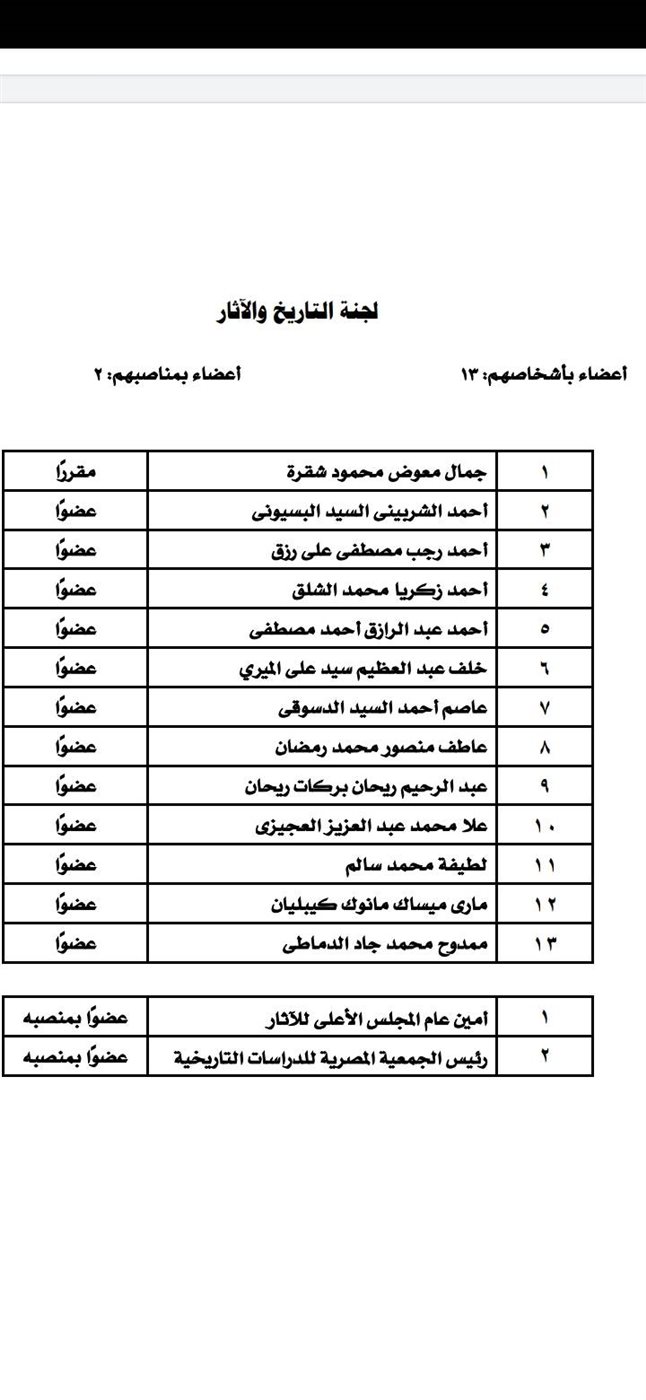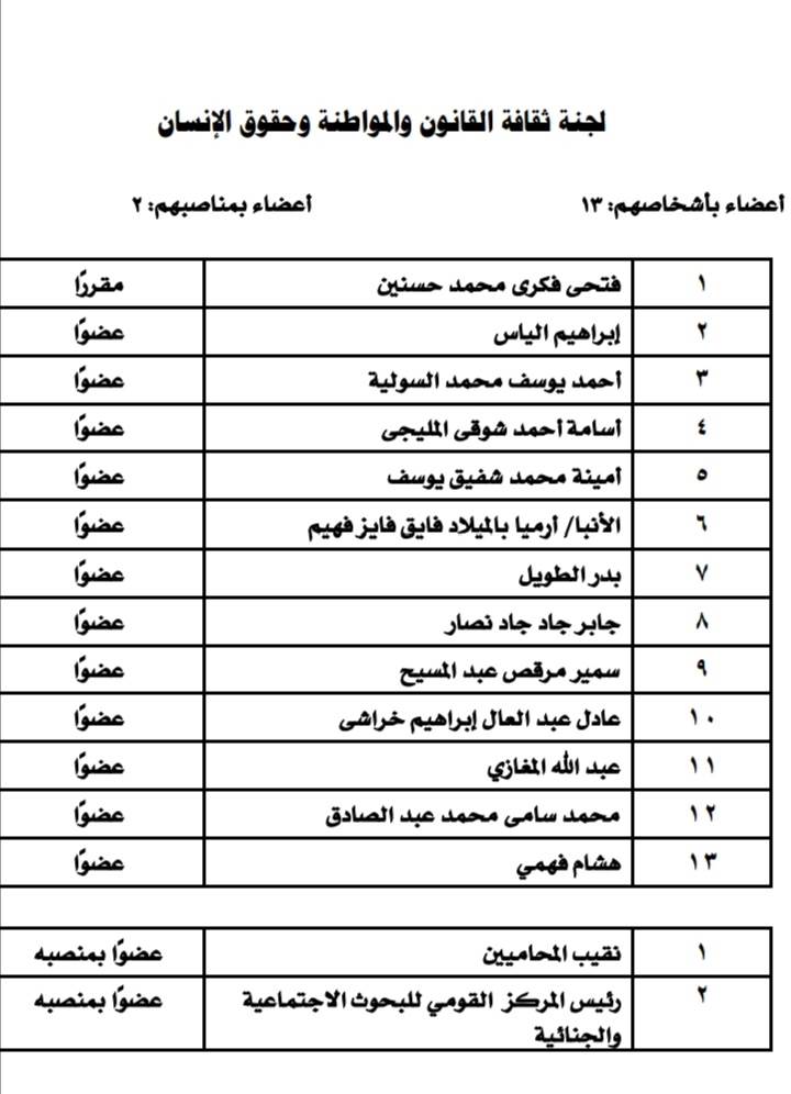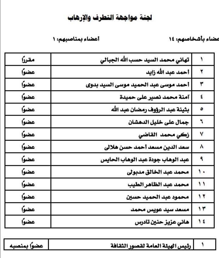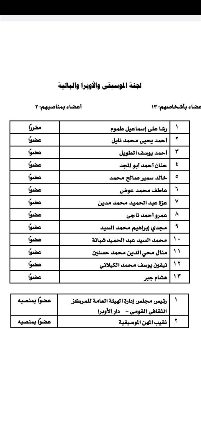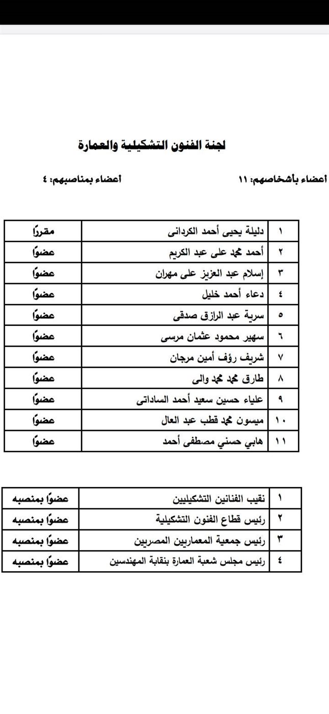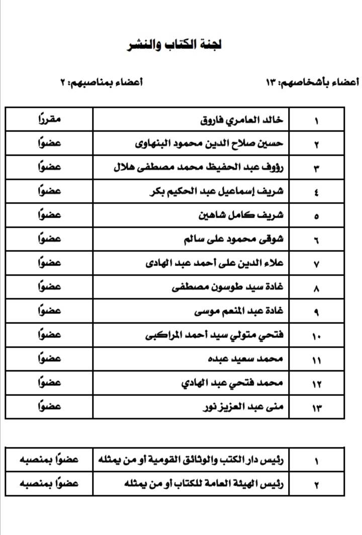 وقد تضمن القرار الوزاري تشكيل لجان المجلس الأعلى للثقافة على النحو التالي: