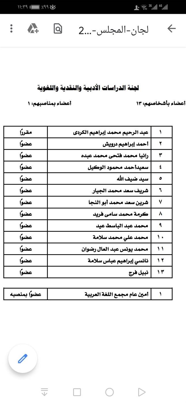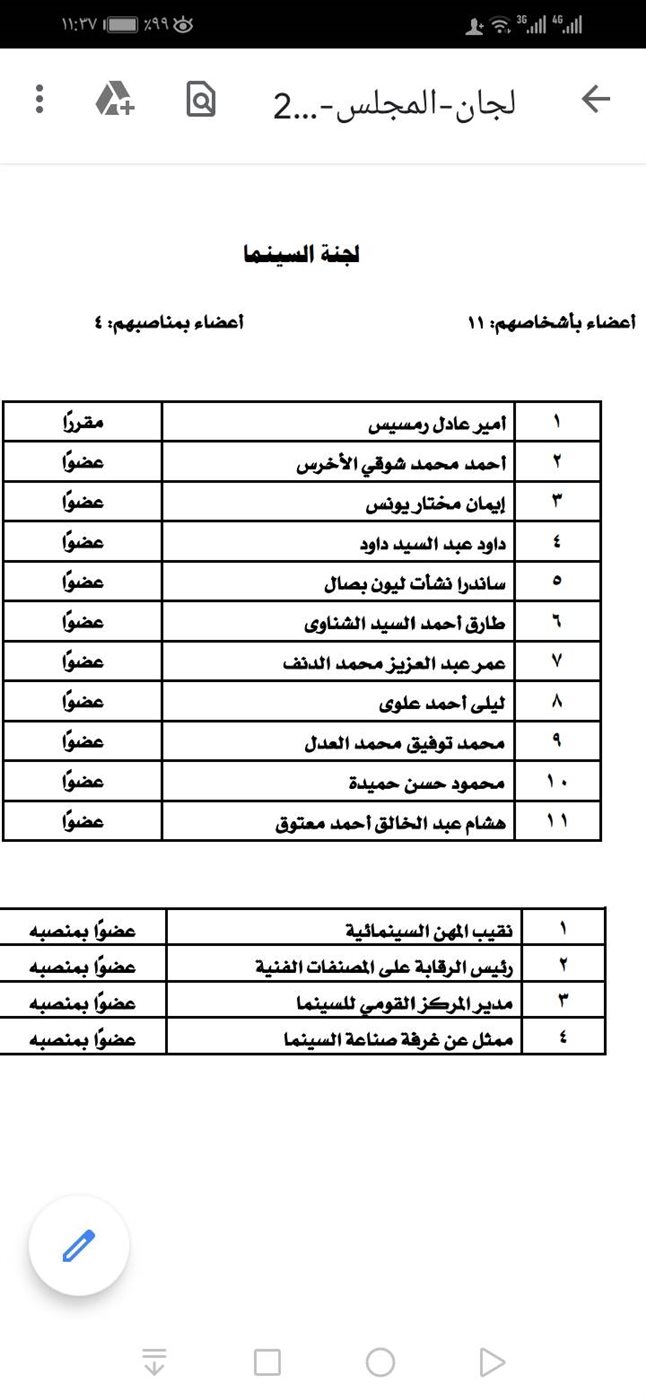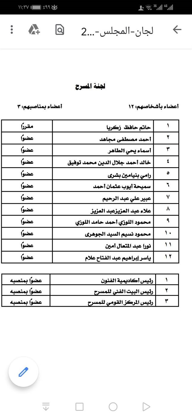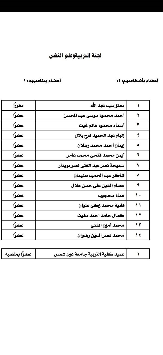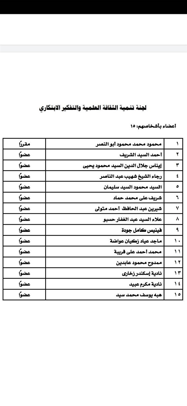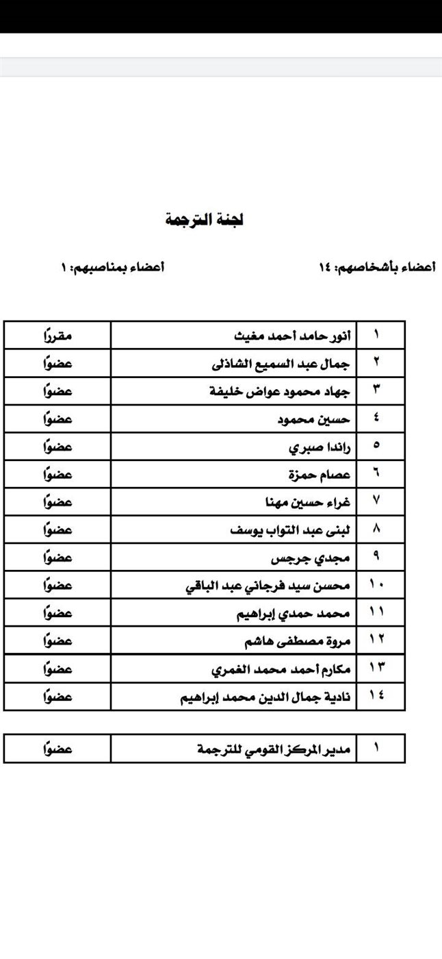 وقد تضمن القرار الوزاري تشكيل لجان المجلس الأعلى للثقافة على النحو التالي: