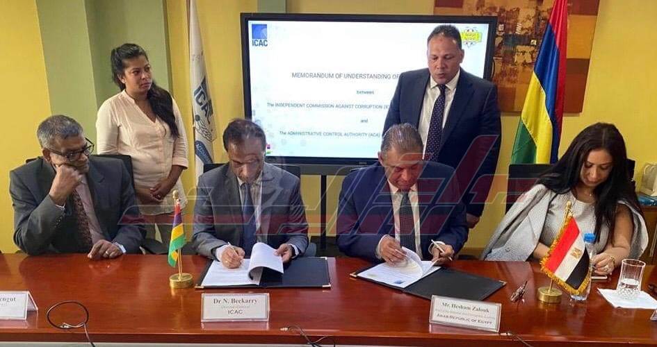 في إطار توجيهات رئيس الجمهورية بدعم قدرات الدول الإفريقية في كافة المجالات، ووفق ما أسفرت عنه توصيات المنتدى الإفريقي الأول لمنع ومكافحة الفساد الذي عُقد بمدينة شرم الشيخ في شهر يونيو ٢٠١٩ ووضعها محل تنفيذ بالتعاون بين الدول الإفريقية في مجال منع ومكافحة الفساد وسُبل الوقاية منه، واستجابة للدعوة الموجهة من المفوضية المستقلة لمكافحة الفساد بدولة موريشيوس، توجه وفد من هيئة الرقابة الإدارية لتوقيع مذكرة التفاهم المشترك للتعاون بين الدولتين في مجالات منع ومكافحة الفساد يتم بموجبها تدريب كوادر المفوضية العاملة في هذا المجال بالأكاديمية الوطنية لمكافحة الفساد التابعة لهيئة الرقابة الإدارية، وتأهيلهم بالخبرات العلمية والعملية في مجال التعريف بالفساد وسبل مكافحته إضافة إلى العديد من المعارف الأخرى وتبادل الخبرات الثنائية بينهما في هذا المجال.