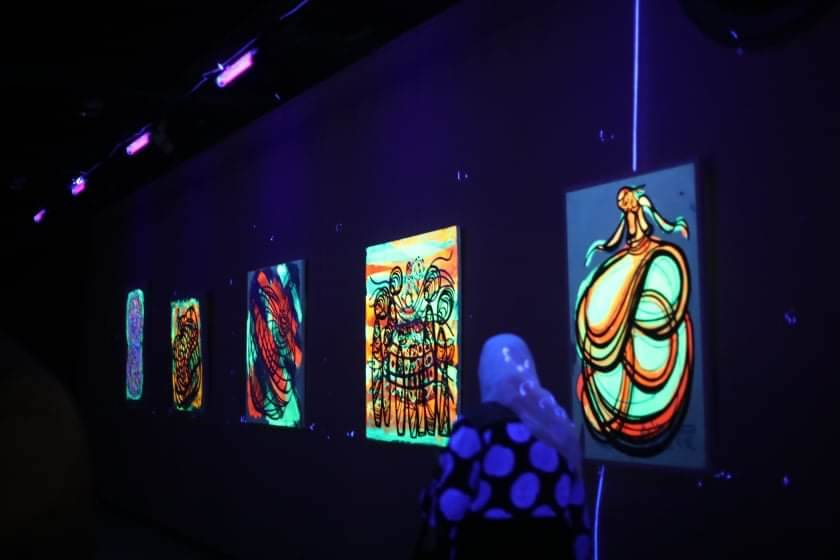 يضم المعرض أكثر من ٣٠ عملا فنيا، يتناول فن من أهم الفنون التراثية للفن المصرى الشعبى الأصيل، وهو فن التنورة، واستطاع الفنان حسين العزبى تصوير رقصات مختلفة ذات ايقاع وحركات متنوعة من هذه الرقصة، وبأسلوبه المتفرد كعادته استخدم الألوان الفسفورية التى تظهر فى أضاء ما يسمى ( بالألترا لايت ) وهى نوع من الإضاءة فوق البنفسجية المنتمية لعائلة النيتروجين تتلألأ فى الظلام، وتظهر الألوان المتعددة المتزاحمة والمتداخلة فى صراع لونى براق فريد من نوعه، كواحدة من سمات الشخصية المصرية المليئة بالزخم الابداعى والتباين الرهيب فى هذه المرحلة .