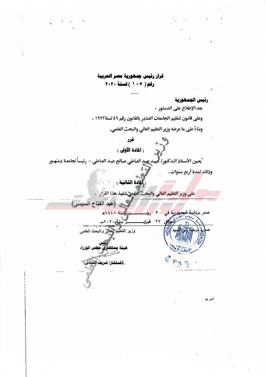 تلقى الدكتور عبيد صالح رئيس جامعة دمنهور خطاب تهنئة من الدكتور خالد عبد الغفار وزير التعليم العالي والبحث العلمي، بمناسبة تجديد الثقة من القيادة السياسية الحكيمة فخامة الرئيس عبد الفتاح السيسي رئيس الجمهورية، وصدور القرار الجمهوري رقم(١٠٥) لسنة ٢٠٢٠، بتعيينه رئيسا لجامعة دمنهور لمدة أربع سنوات، مقدما لسيادته خالص الأمنيات بدوام التوفيق والسداد والمزيد من العطاء فى خدمة وطننا العزيز.