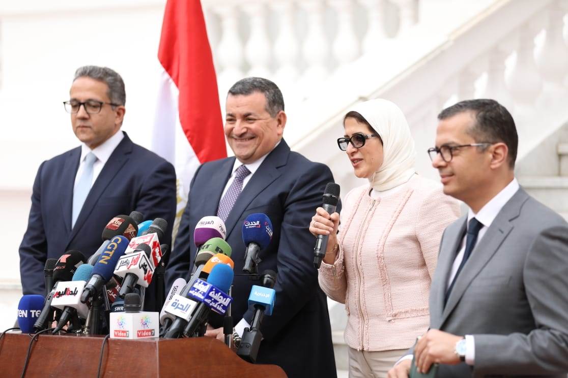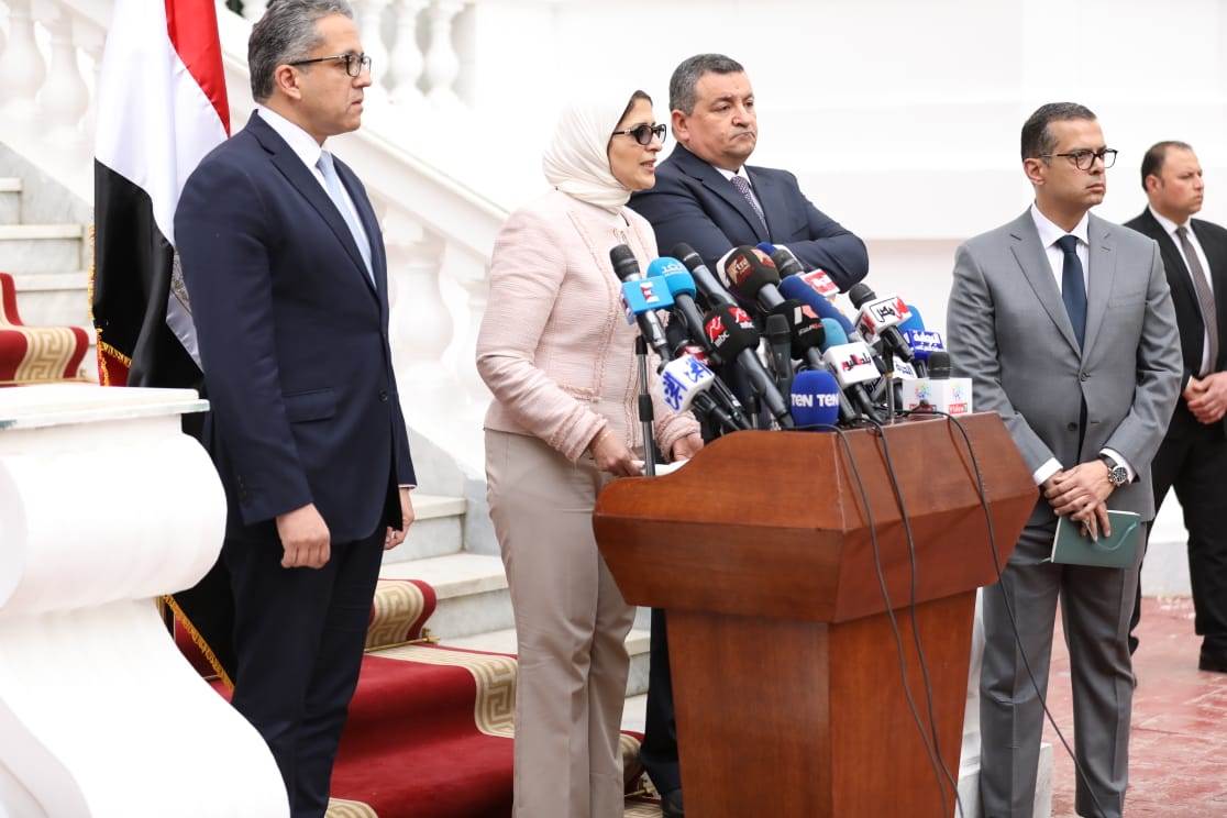 جاء ذلك خلال مؤتمر صحفي بمقر وزارة الدولة للإعلام، اليوم، بحضور كل من الدكتورة هالة زايد وزيرة الصحة والسكان، والدكتور خالد العناني وزير السياحة والآثار، والدكتور أسامة هيكل وزير الدولة للإعلام.