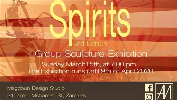 يفتتح يوم الاحد القادم 15 مارس الساعة السابعة مساء بقاعة "مجدوب ديزاين ستوديو" الدورة الثالثة لمعرض"Spirits "، هو لمجموعة مميزة من النحاتات المصريات الشابات، وهن إسراء حاتم - إنجي بركات - ريهام أبو العزم - ريم أسامة - سمر مجدي - شروق هلال - لينا المجدوب - مريم الكسباني - منة إسكندراني - ميسون الزربة - هبة أبو العلا - وئام علي - يوستينا فهمي ، يستمر المعرض الى ٩ابريل ٢٠٢٠.
